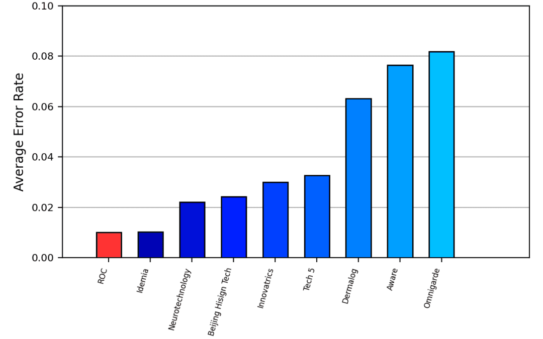 In terms of performance relative to all other vendors who have submitted to the NIST PFT benchmark, ROC is the number one performer on the Nail-to-Nail benchmarks, ranking #1 in 8 of the 12 sensors, #2 in the other four sensors, and #1 in mean error rate across all sensors: